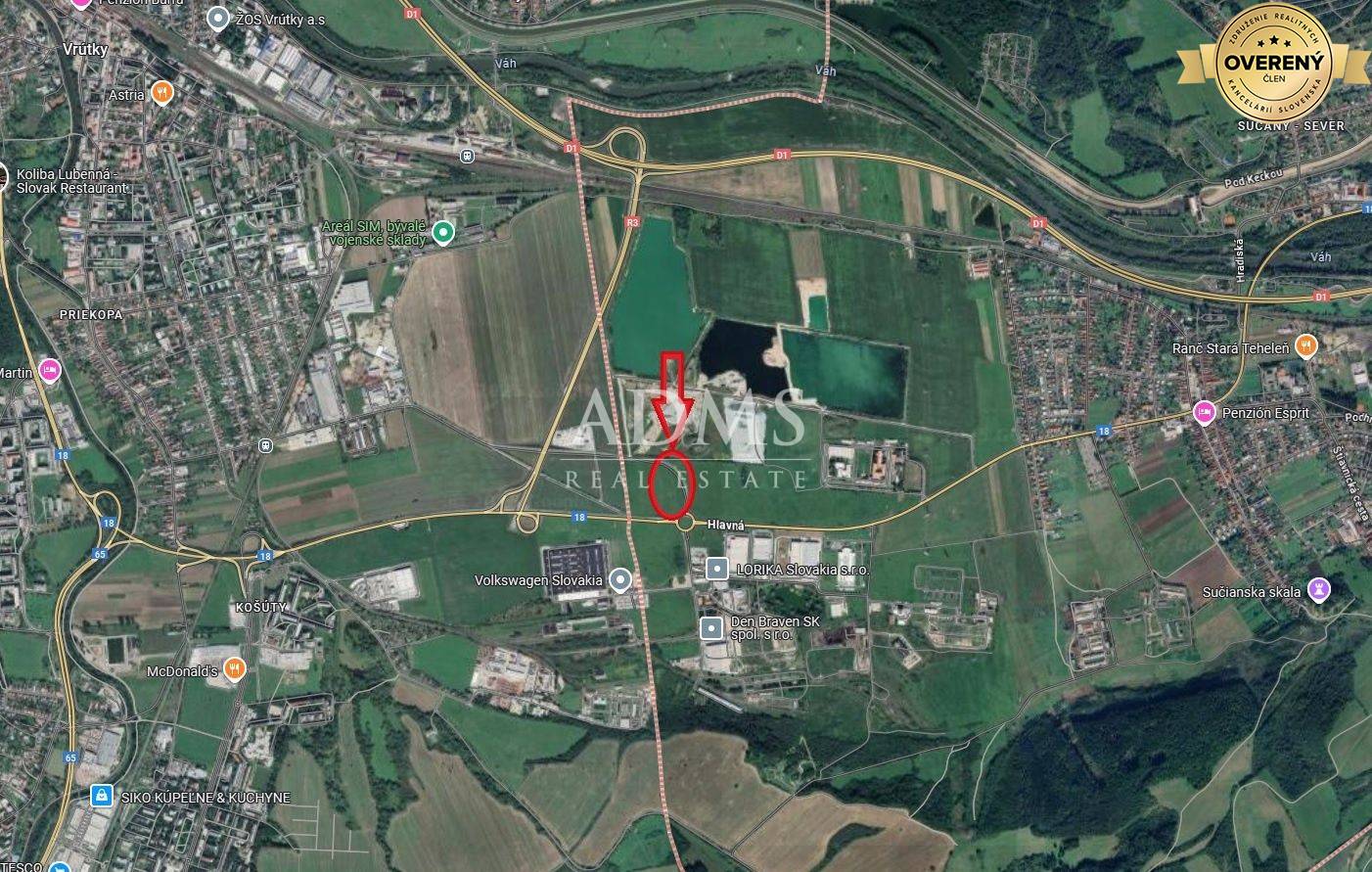 Industrial land in Sučany. - width approx. 70m - length approx. 240m LOCATION - industrial zone of the city - on the main road to Martin and Žilina - connection to the D1 highway approx. 3km - strategic location for the...